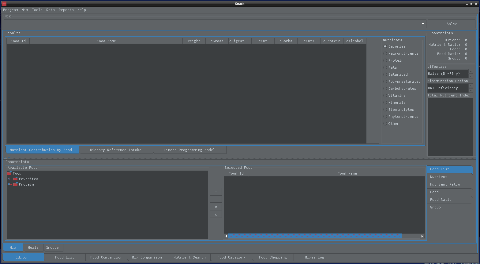 Nutrient constraints can be used to create a food mix that meets specific dietary requirement, for example, a minimum amount of fiber in the diet. Nutrient constraints specify the amount of nutrient a food mix should have.